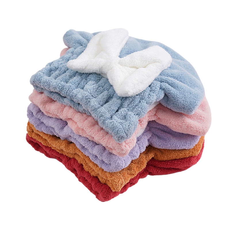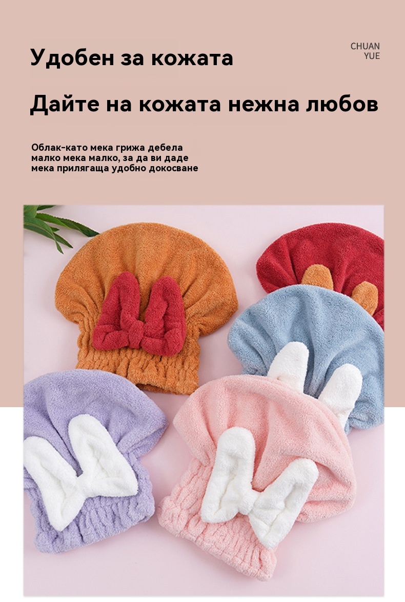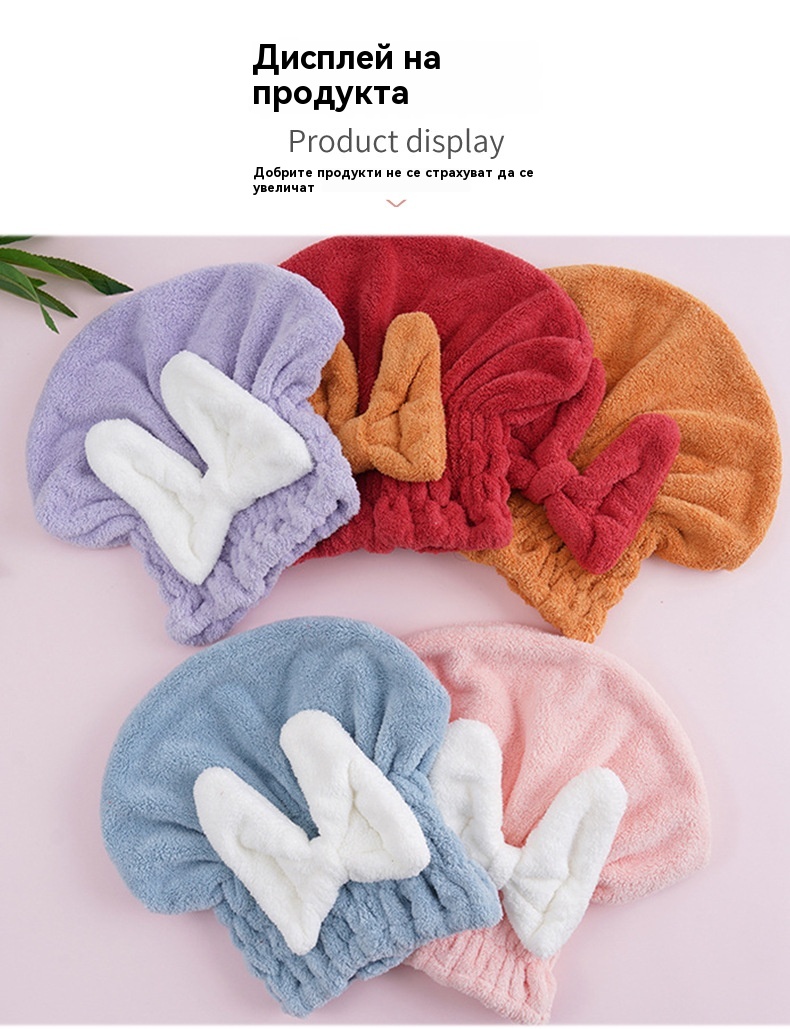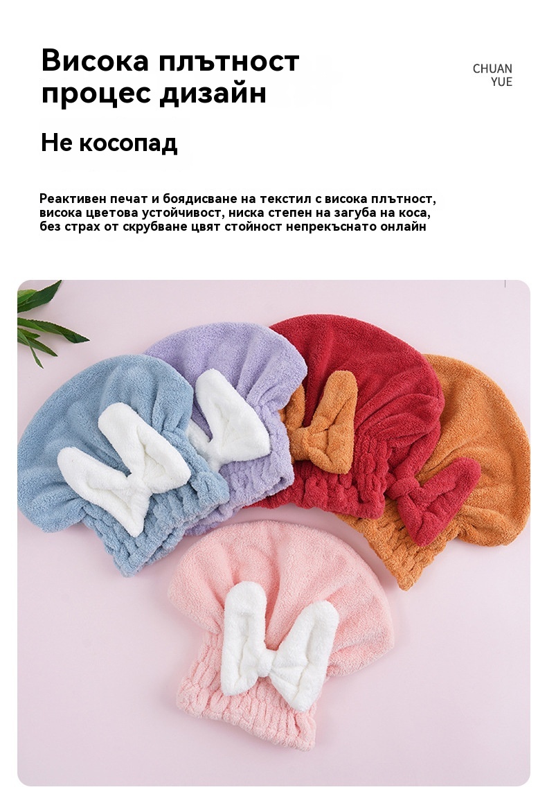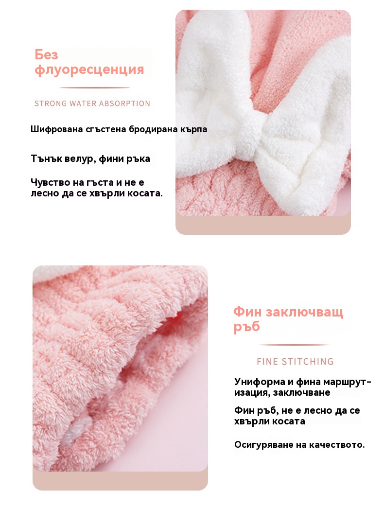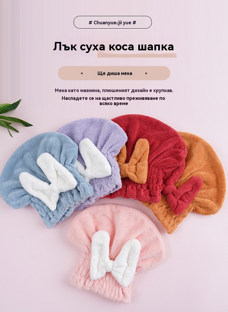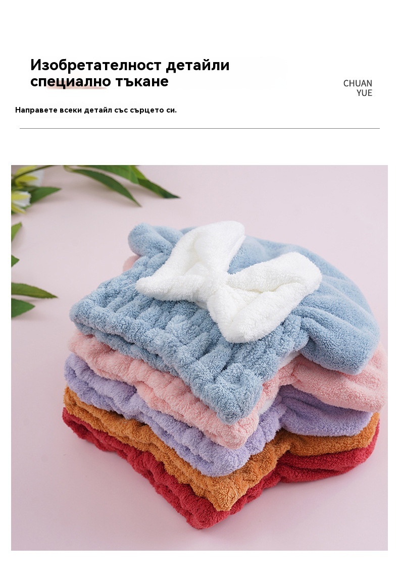 🔥Купете една, вземете втората безплатно🔥🎀🛀Сладка шапка за сушене на коса с панделка от коралов полар, удобна и мека, супер абсорбираща😍